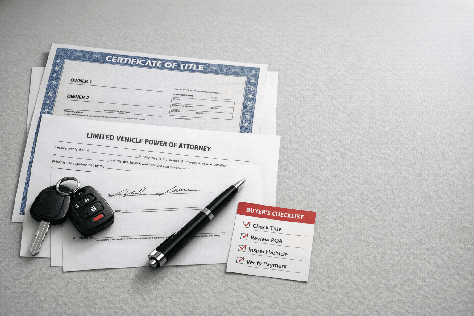 - One owner present, one owner "unavailable": That is where a real vehicle power of attorney, remote notarization path, or mailed signature process becomes the whole deal.